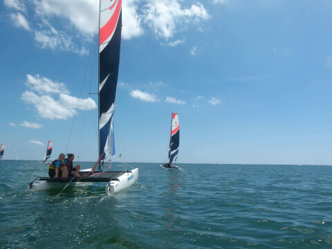Objectif perfectionnement: Maitriser les réglages précis du bateau, le trapèze et la surpuissance pour être autonome par la suite.